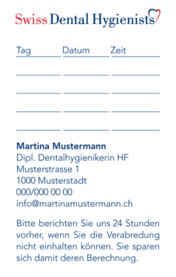 Sie können via Bestellformular Ihr Namensschild bestellen oder Ihre eigenen Terminkarten drucken lassen.